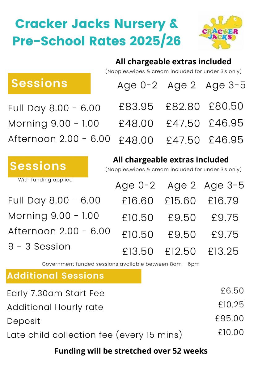 Using funded hours and all additional extra *Discounted Rates* Under 2's Age 2-3 Pre-school